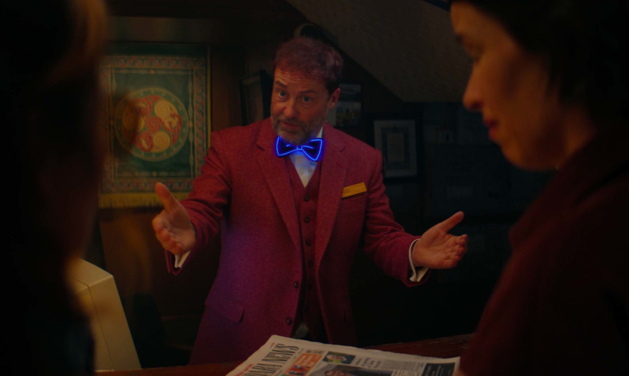 “Ardal – watch out for his bowtie! – was absolutely magic and Bronagh is such a bad ass in the show. We didn’t do a scene together but ten years ago I was in the same independent film as her, Made In Belfast, and she made it look so effortless – which of course it isn’t. Those are the actors who you know have done an incredible amount of work and have a special talent.”
