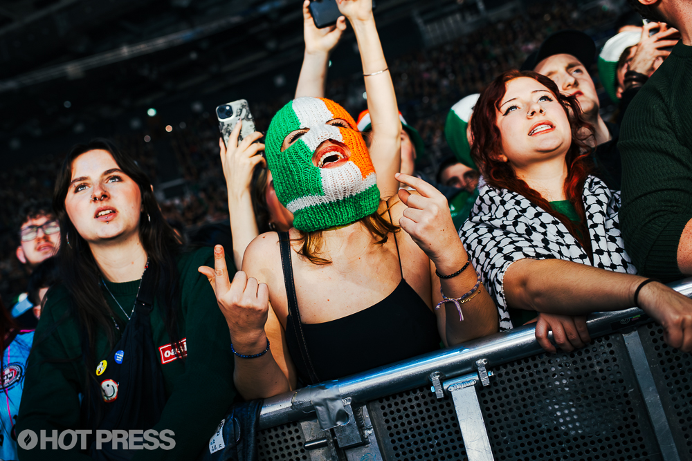 Kneecap at 3Arena on December 16th, 2025. Copyright Abigail Ring/ hotpress.com 30% of the jersey profits will be going straight into enabling construction of a community music studio for artists and creatives in the Aida Camp in the West Bank.