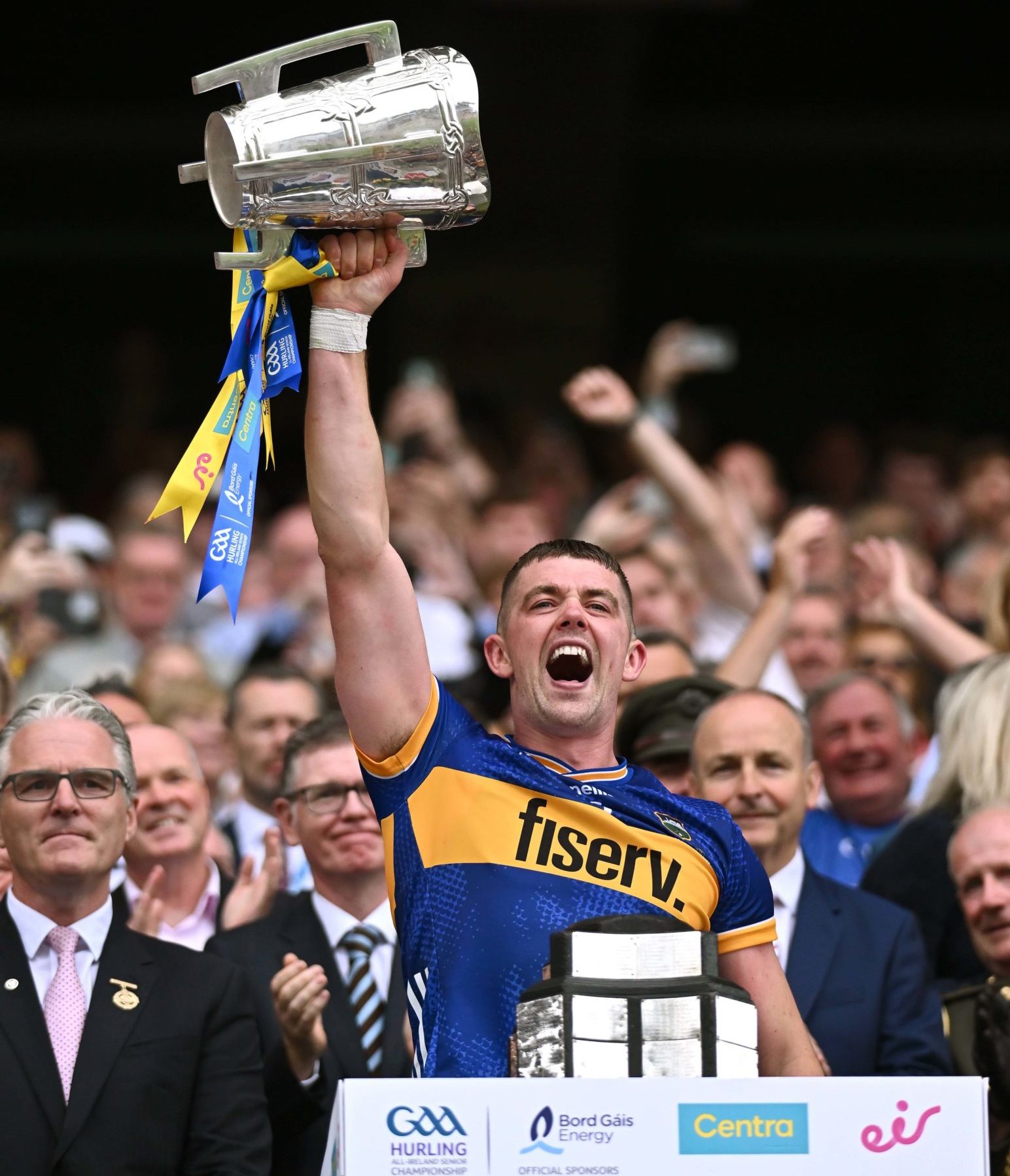 Tipperary captain Ronan Maher lifts the Liam MacCarthy Cup. Photo by Piaras Ó Mídheach/Sportsfile