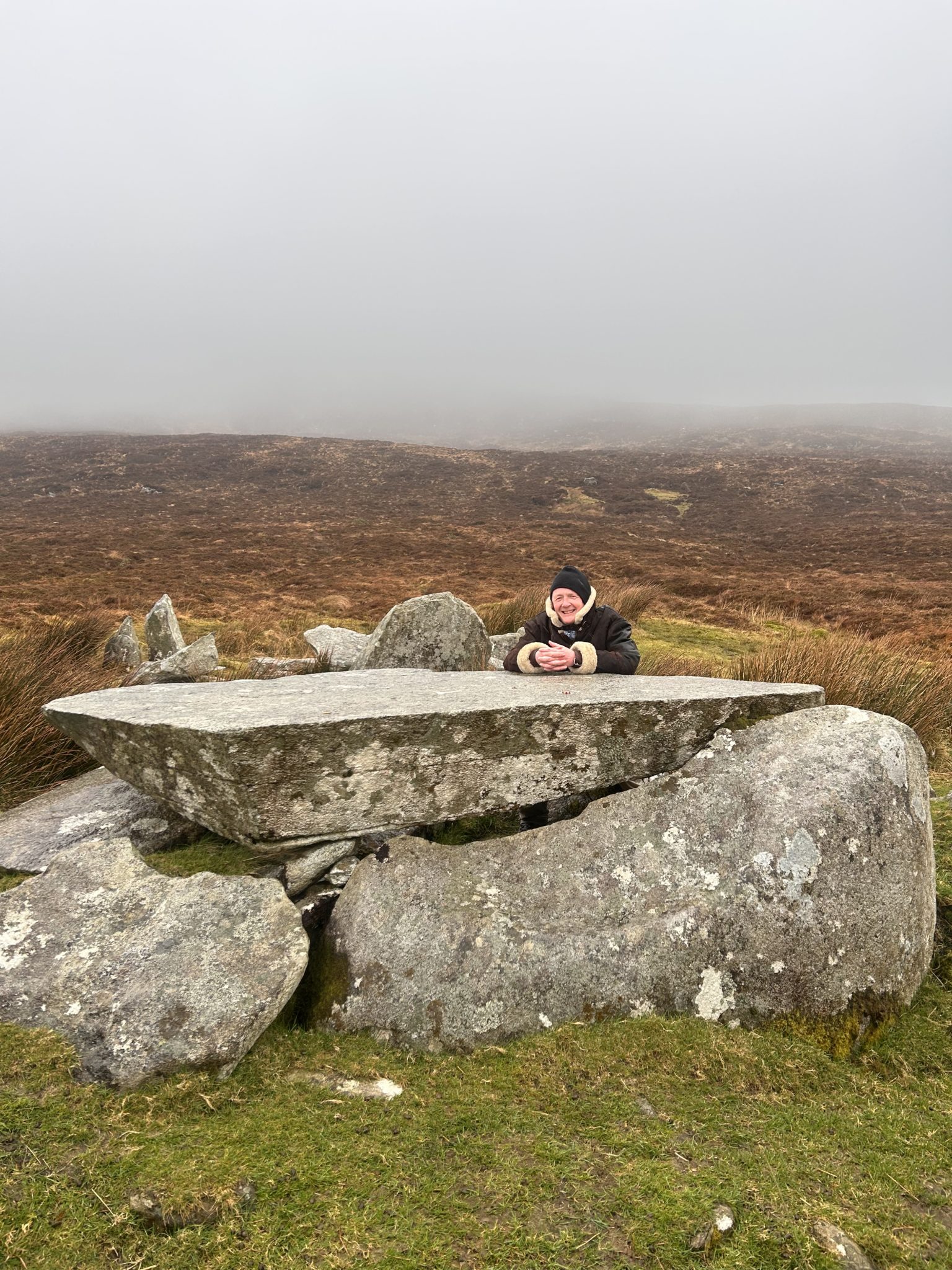 A pink moon shone over Achill that night and I was happy to see it and took it as a harbinger of good fortune for the gigs ahead. The following morning we trekked to the deserted village and knelt amongst the potato ridges, standing on rushes to avoid the bog water both of us in awe of the kind of resilience needed to survive in that place amongst the elements but also the strength of such a community and we speculated on their imagined joys and internal resentments before I left the price of a pint or coffee in tribute on the Druids altar in an adjacent field.