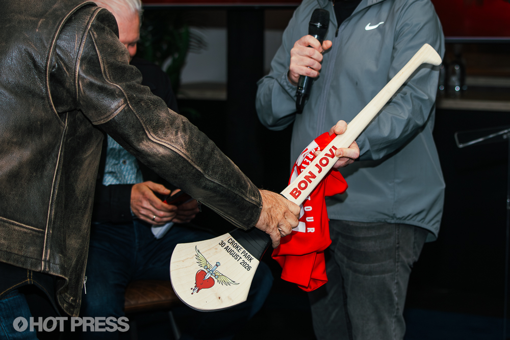 Bon Jovi at Croke Park on October 23rd, 2025. Copyright Abigail Ring/ hotpress.comDorothea's maiden name is Hurley, he explained with a laugh, as Croke Park staff presented him with a hurley bearing his name.
