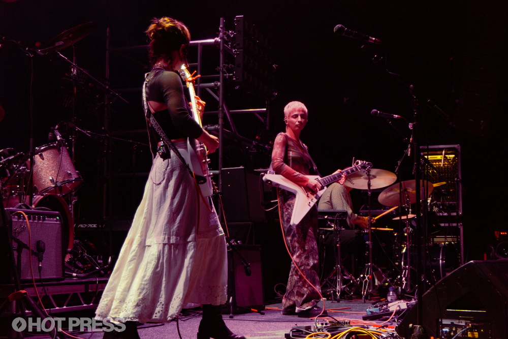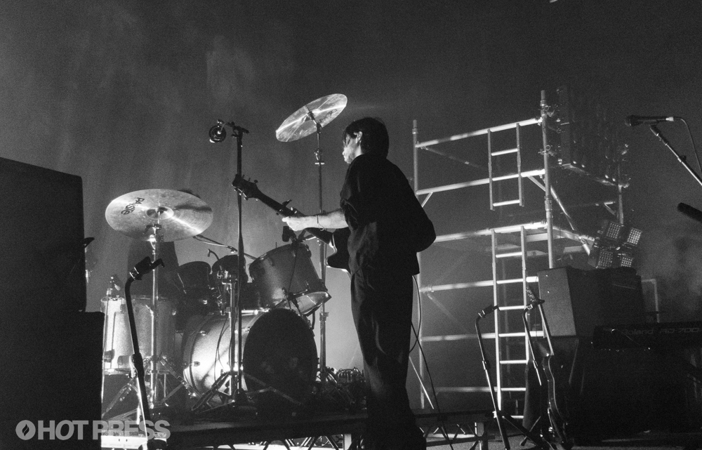 Sour Widows supporting Alex G at Vicar Street on November 18th, 2025. Copyright Grace Swartout/ hotpress.comAt 9pm on the dot, the room turned pitch-black, as the sound of an engine revving drew attention back toward the stage. Towering lights stood at either side, as they blazed blindingly bright like headlights in the distance. Soon enough, Alex G and band had made their big entrance and immediately dove into 'Louisana', an angsty low shoegaze track with tinges of country-gaze influence.