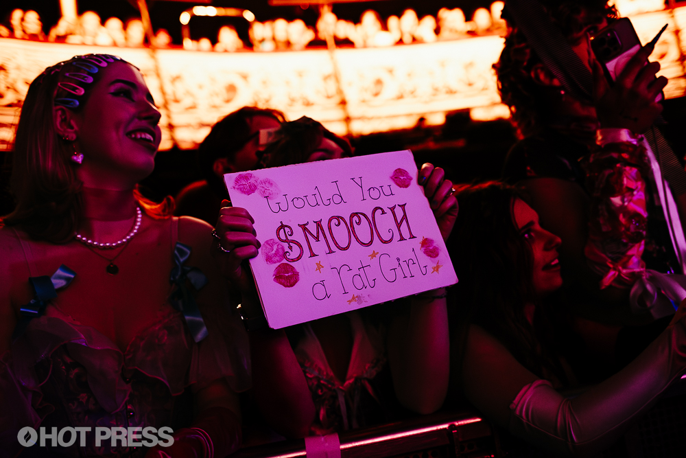 In line with the theme of her album, she promised she'd take every trinket her fans leave behind at the merch stand. Then she got handed a stuffed toy rat from the audience, which she kept with her on stage for the rest of the show. She also received an Irish flag with her face on it. That's when she shouted "I love this! We are linked forever".