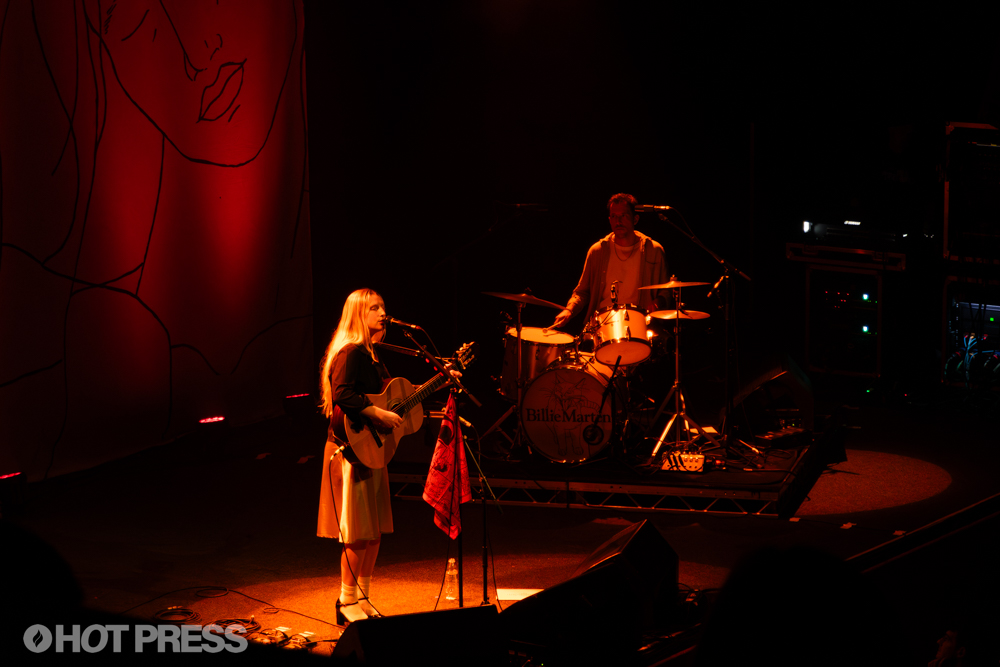 Le Ren supporting Billie Marten at Vicar Street on November 5th, 2025. Copyright Grace Swartout/ hotpress.comBefore you know it, Billie Marten emerges from the wings, her percussionist and bassist stand stationed at her sides. The crowd reacts with what can only be described as nervous laughter, the anticipation becoming overwhelming. Behind her is a large tapestry, illustrated with an outline of the English singer's newest album, Dog Eared’s cover art.