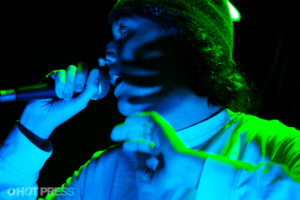 The night starts off with a guest appearance by Deathtoricky, a young Dublin rapper whose been gaining some traction online over the last while. His ragey, Opium-style sound blends distorted trap beats with witty lyricism and a confident delivery, and his stage presence could fool anyone into thinking he was born under a spotlight. With his parents watching proudly from the crowd, he delivers a set full of charisma and raw potential.