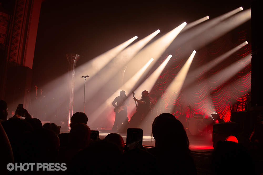 The breathtakingly beautiful theatre, with its red velvet seating, detailed white, gold and red walls, was a luxurious home to Thomas’ show. His stage set matched the opulent theatre with the textured fabric draped behind his band and the disco ball columns. The entire space complemented the R&B artist’s sensual and warm set, which you couldn’t resist not bopping or swaying to.