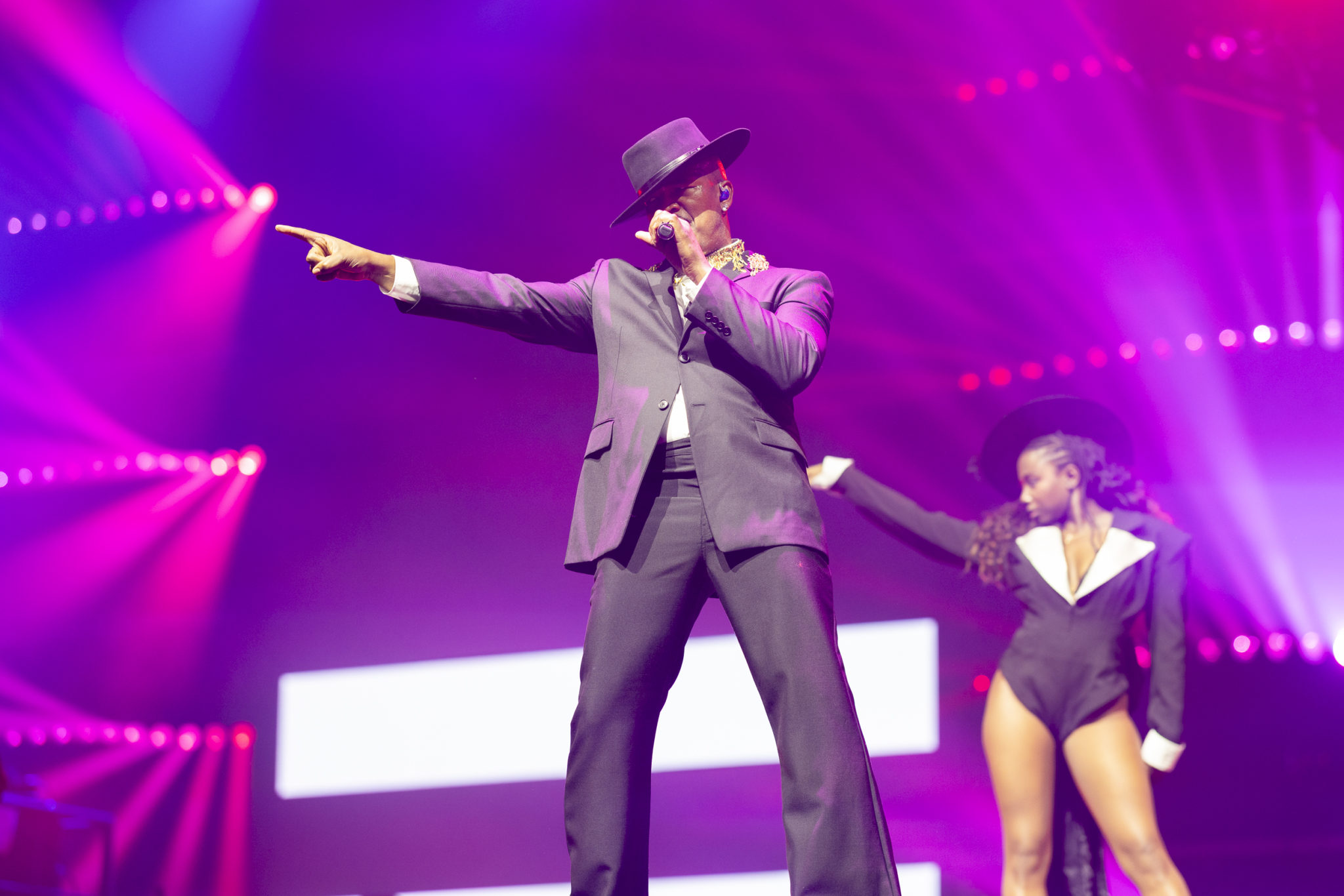 NE-YO opened the show, appearing in a flared black suit and his signature black fedora. His initial set drew from his 2006 debut album, In My Own Words, with hits like ‘So Sick’ and ‘Sexy Love.’ Accompanied by a jazz trumpet trio, this part of the show exhibited a certain polished maturity and sleekness. He then transitioned to tracks from his 2010 album Libra Scale, including ‘One in a Million’ and the funk-infused ‘Champagne Life,’. Ne-Yo’s set was akin to an elite gentleman's club, complete with dancers in bikinis waltzing around poles and a memorable moment featuring a woman acting as a human chandelier.