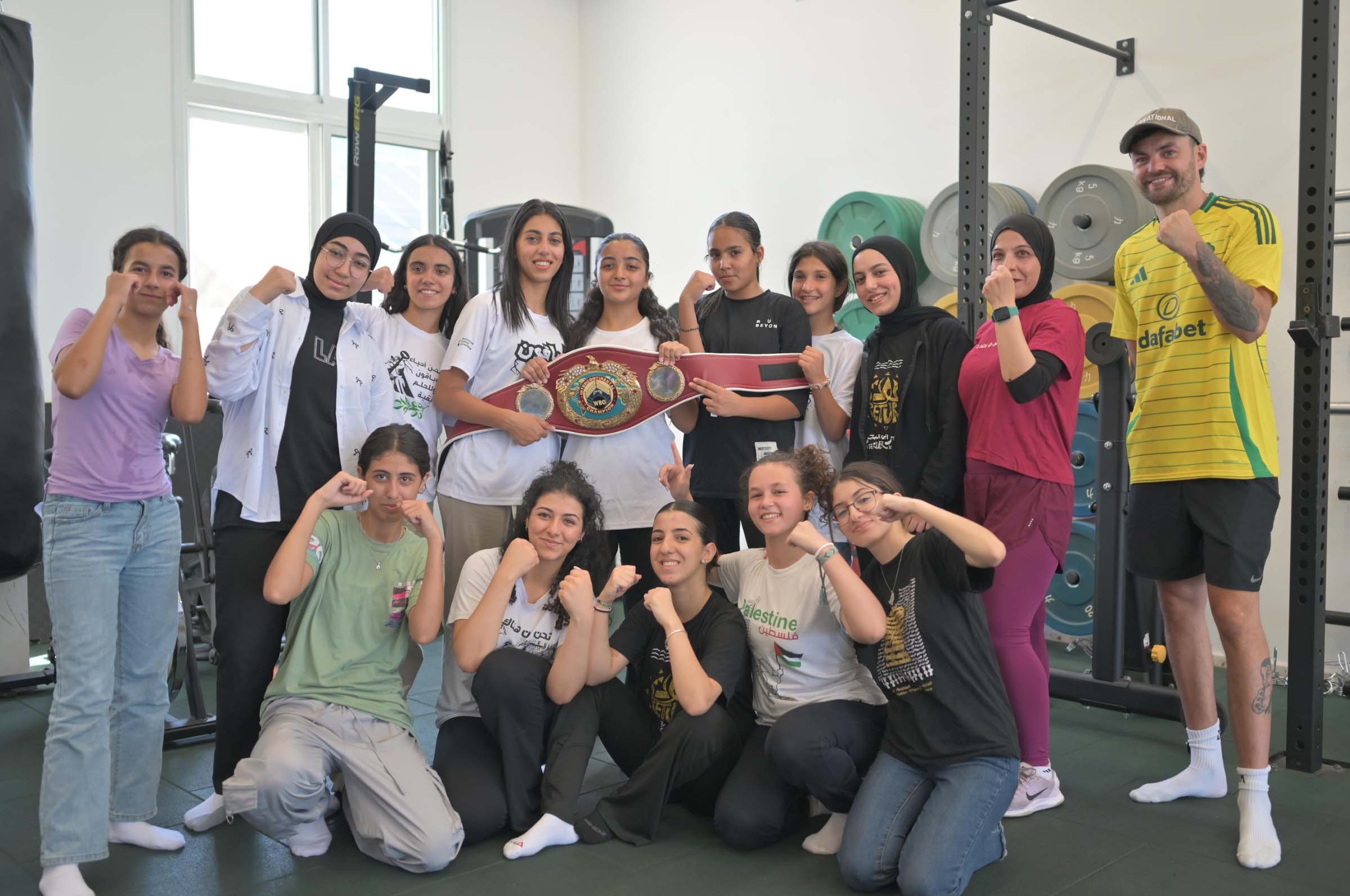 Female boxers in ACLAÍ Palestine after a training session with Tyrone McKenna