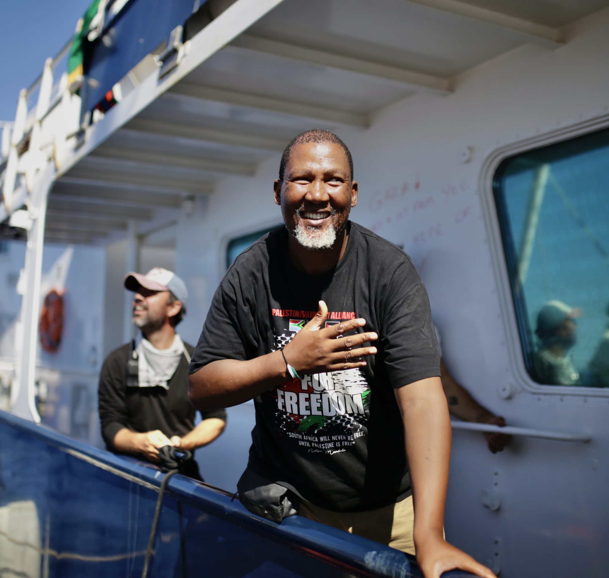 Ewa and Meriem from the All In offer wise humour and hugs; friends on the Yulara & Ohwayla vessels send poetry about collective liberation; human rights lawyers on board the Shireen work to frame this civilian mission within International Humanitarian & Maritime law; Nkosi Mandla, Nelson Mandela's grandson, and Semih mediate, anchor and steady other activists on the Alma (Soul of our Souls).