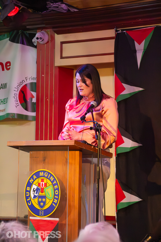 BDS Super panel at Teachers Club on April 9, 2026. Copyright hotpress.comThe event featured a surprise appearance by Sinn Fein TD Joanna Byrne. Byrne was recently removed as a director of Drogheda United F.C. by the club's US-based owner after publicly opposing the Republic of Ireland playing Israel in the UEFA Nations League.